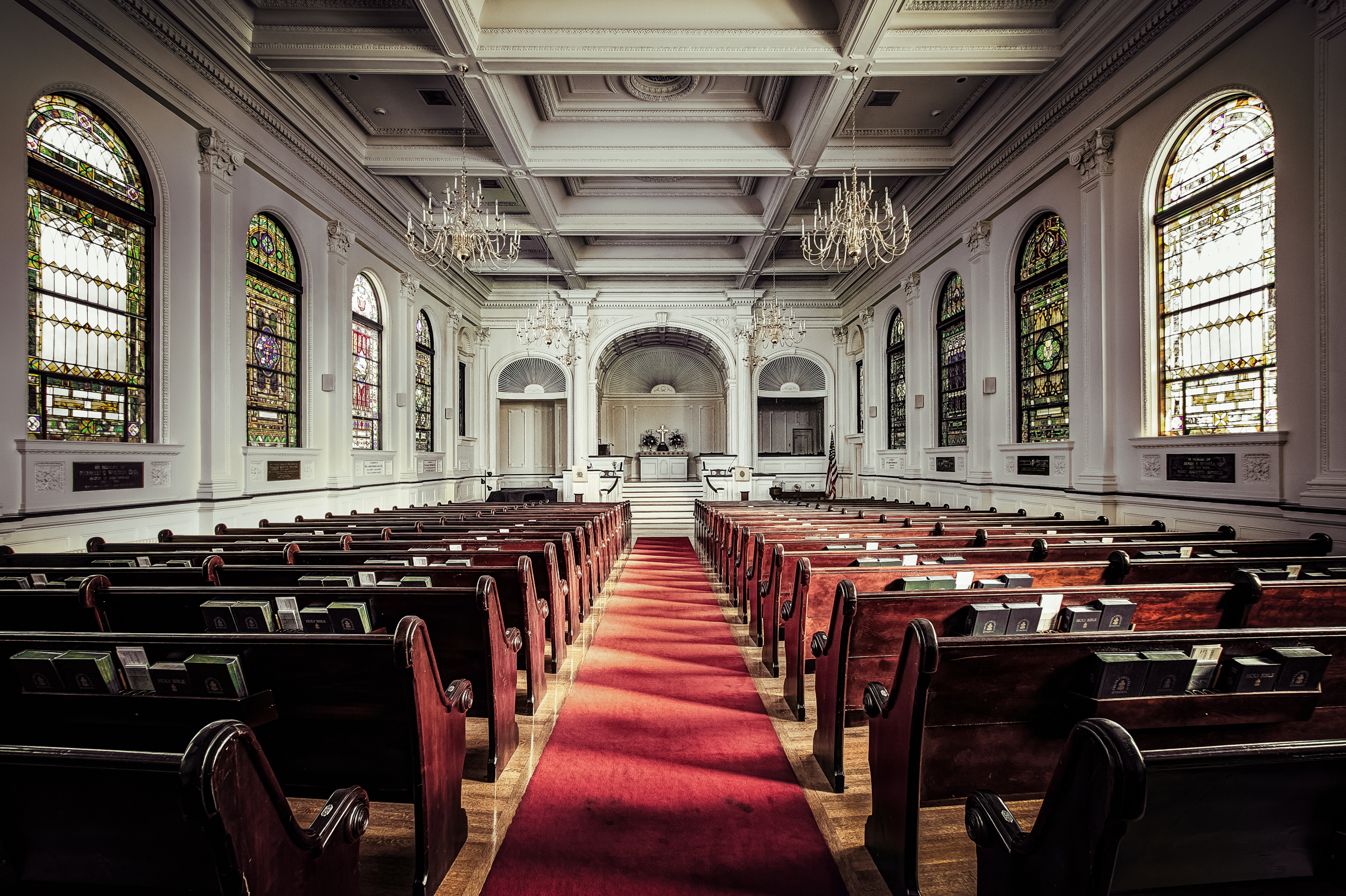 As I make my way through some new interior church shoots I wanted to apply some of my new-found techniques to an older photo of my church.  I discovered it’s not ALL about techniques and post-processing (actually I knew this going in).  This is in direct response to that pocket of folks who believe that all the post-processing work that’s all the rage now is cheating.  I’m here to say that the post-processing will certainly bring out the best in an image, but if you don’t start with a decent image (tack-sharp, great composition, interesting subject matter, etc.) you’re not going to get very far.  I’m satisfied with the edit of this image, but I wish I had a better image to begin with.